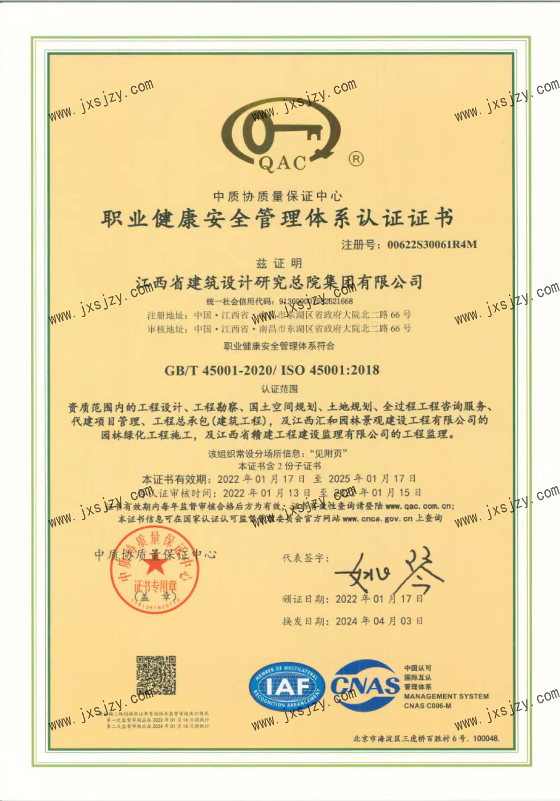 職業(yè)健康安全管理體系認(rèn)證證書
