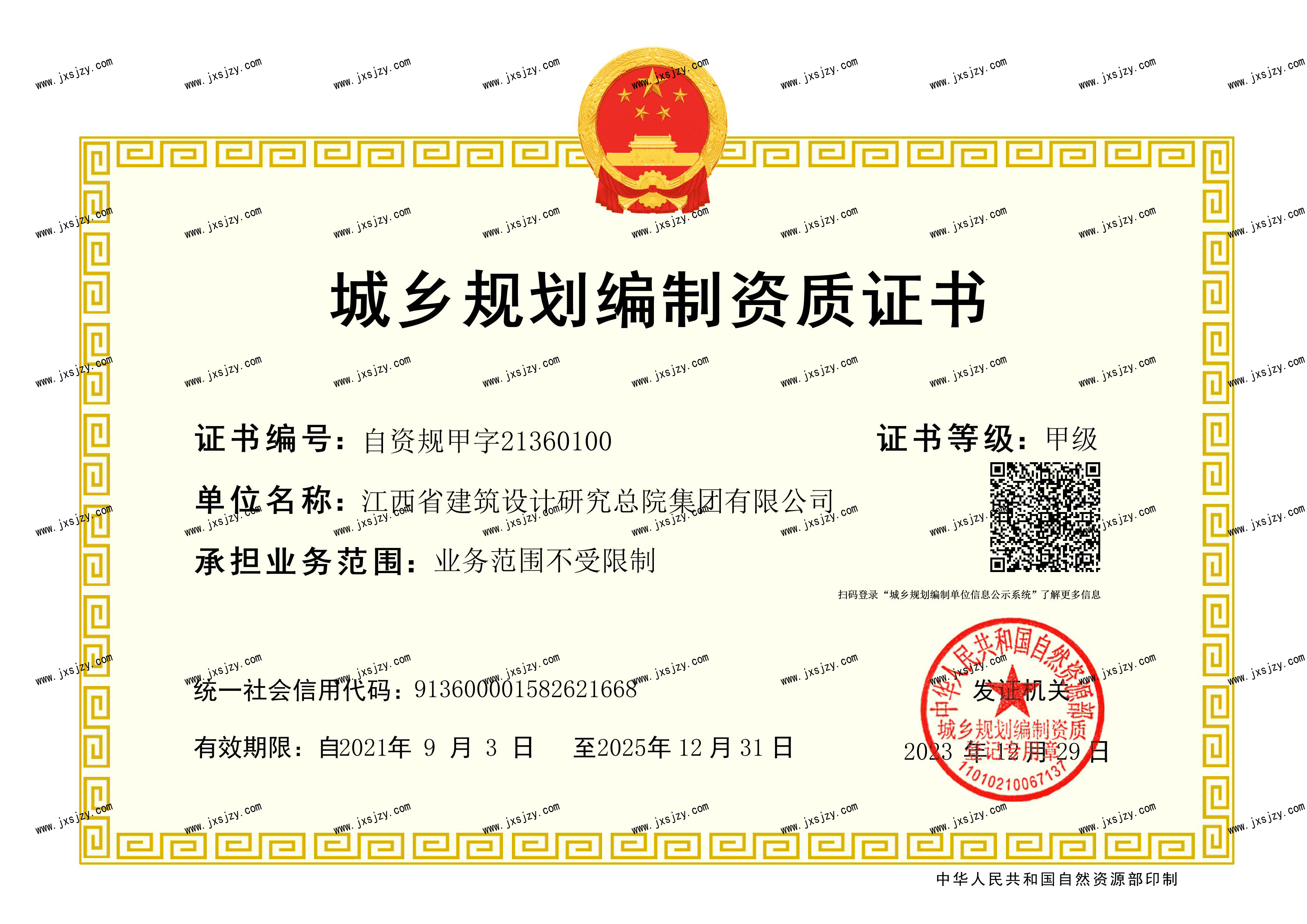 城鄉(xiāng)規(guī)劃編制資質(zhì)證書