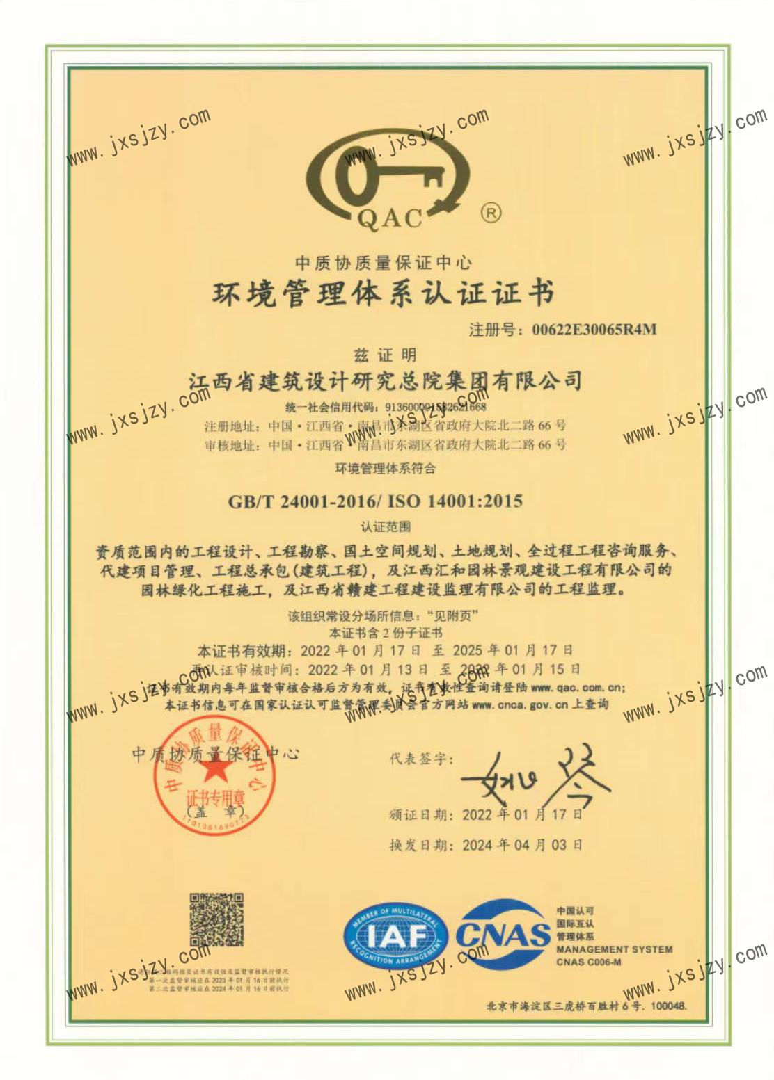 環(huán)境管理體系認(rèn)證證書